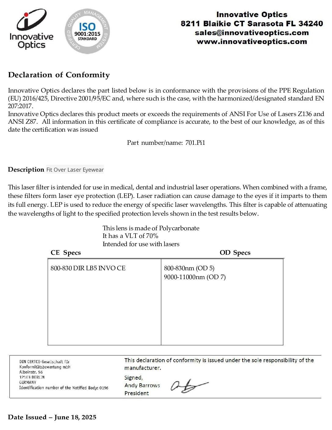 Our 701 Pi1 White laser glasses are designed with great quality and customization in mind. The 701 frame has a universal fit with bendable temples and a fit over design. The 7 different color options allow you to come up with your own organizational system.