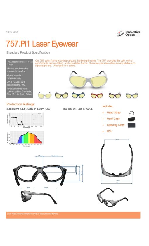 Our new 757 sport frame is a wrap-around, lightweight frame. The 757 frame is available in most laser and IPL protective lens options. The 757 provides the user with a comfortable, secure fitting, and adjustable frame. The nose pad also offers an adjustable and lightweight feel.