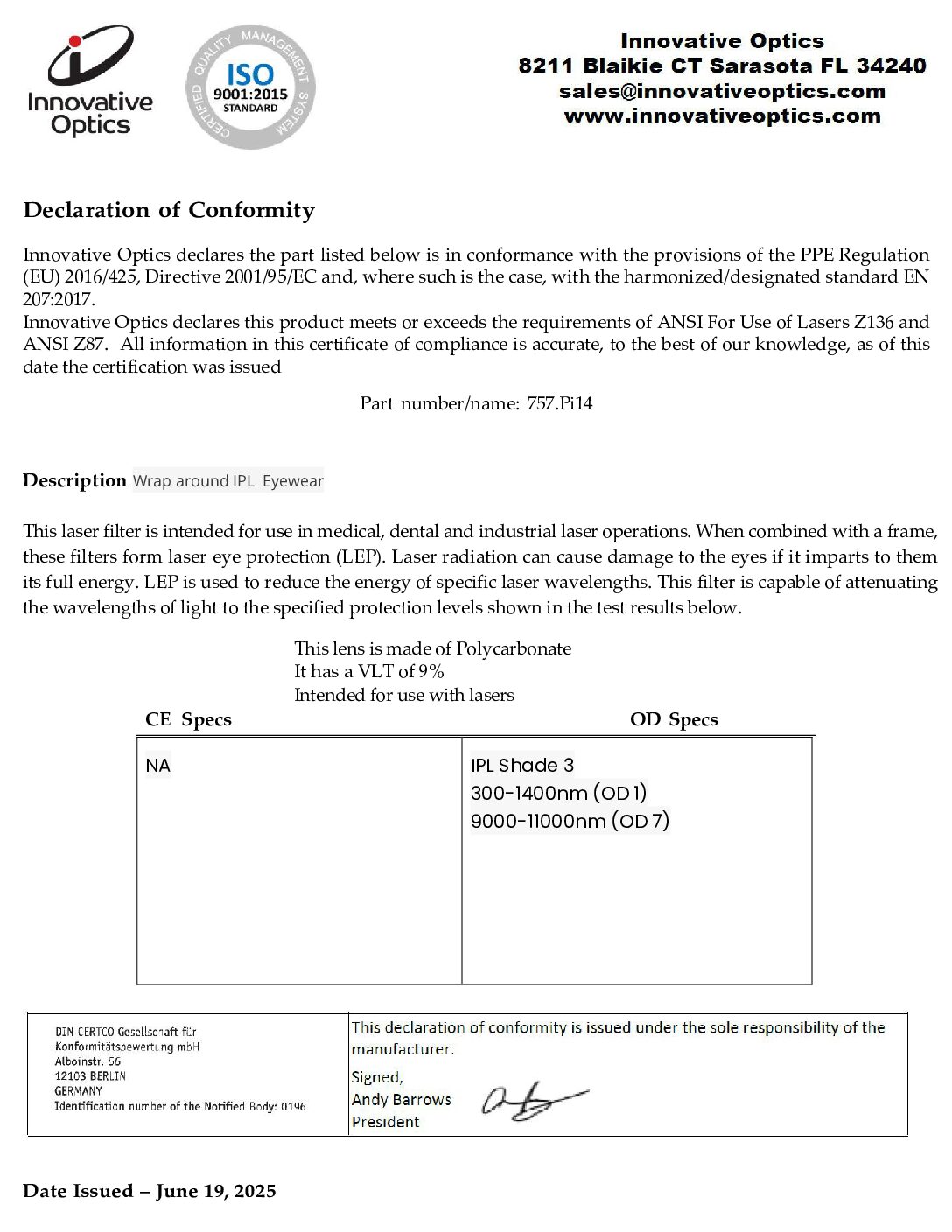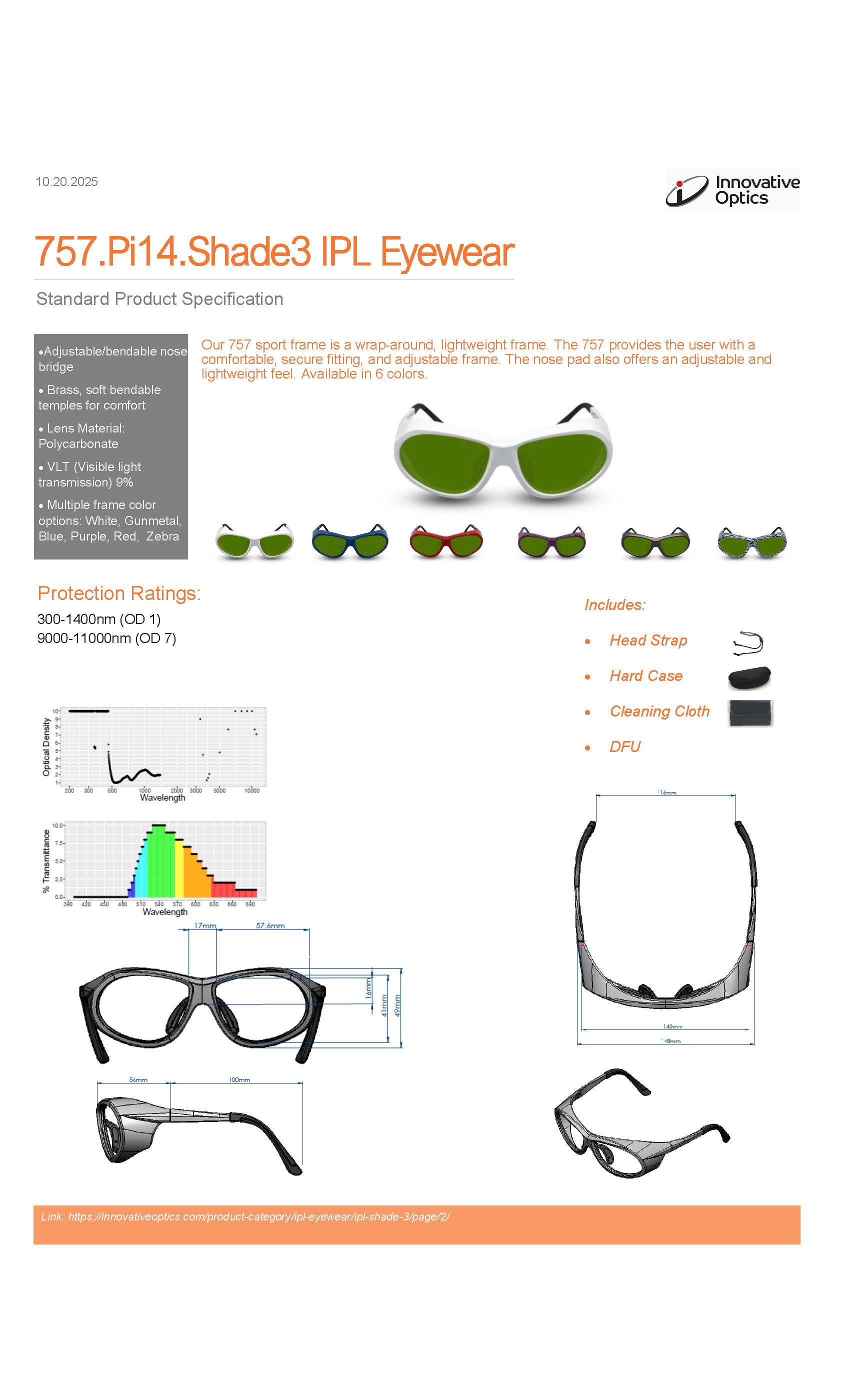 The 757.Pi14 IPL3 Glasses protect against all IPL wavelengths.