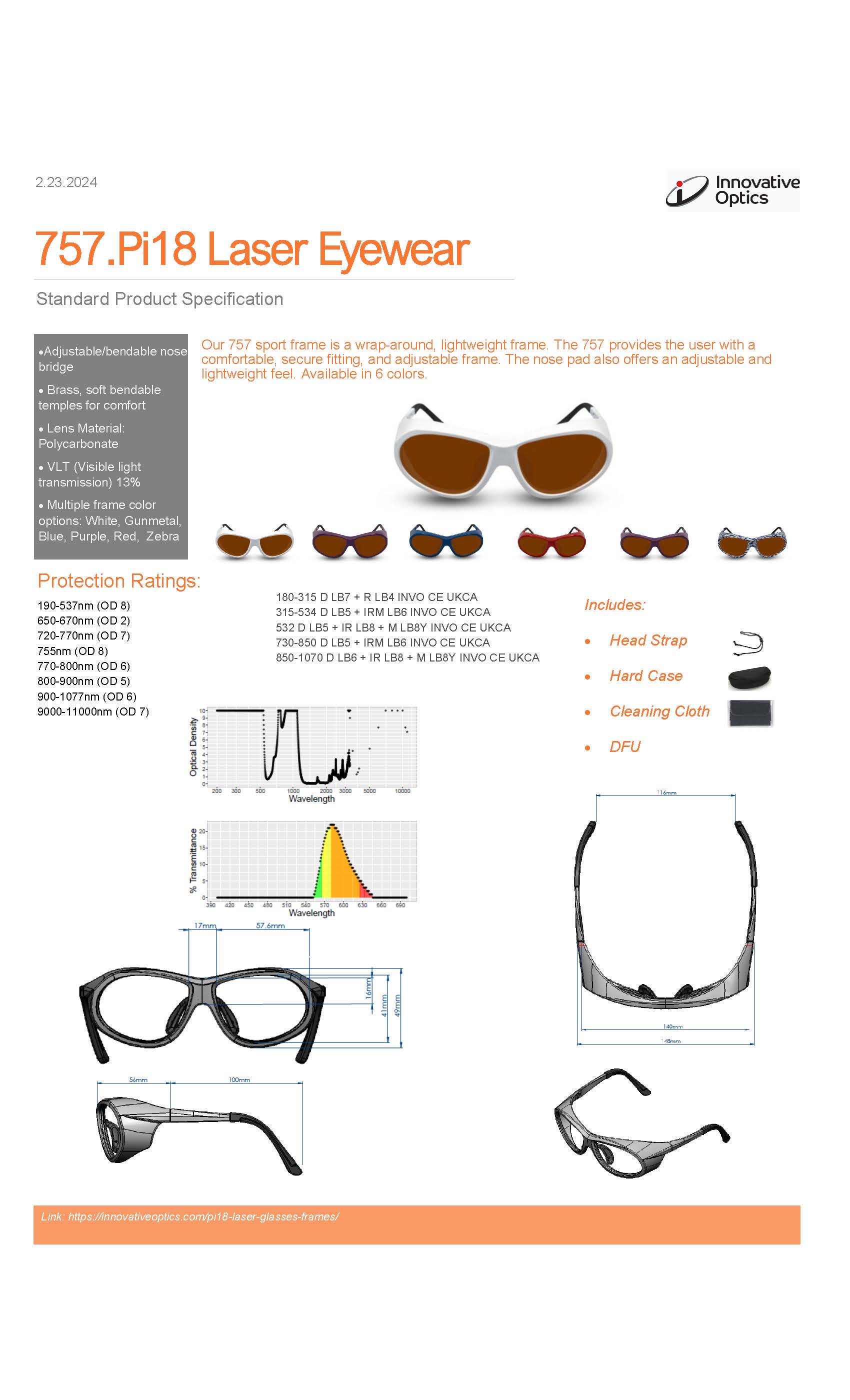 Laser Type: Argon (515 nm OD 8), Blue light laser (450 – 480 nm OD 8), CO2 (10600 nm OD 7), Diode (940 nm OD 6), Disc (1030 nm OD 6), Excimer (193 nm OD 7), Faser (976 – 1080 nm OD 6), Nd:YAG (1064 nm OD 6), KTP (532 nm OD 8), Nd:YAG 3x (355 nm OD 8), UV (248 nm OD 8)