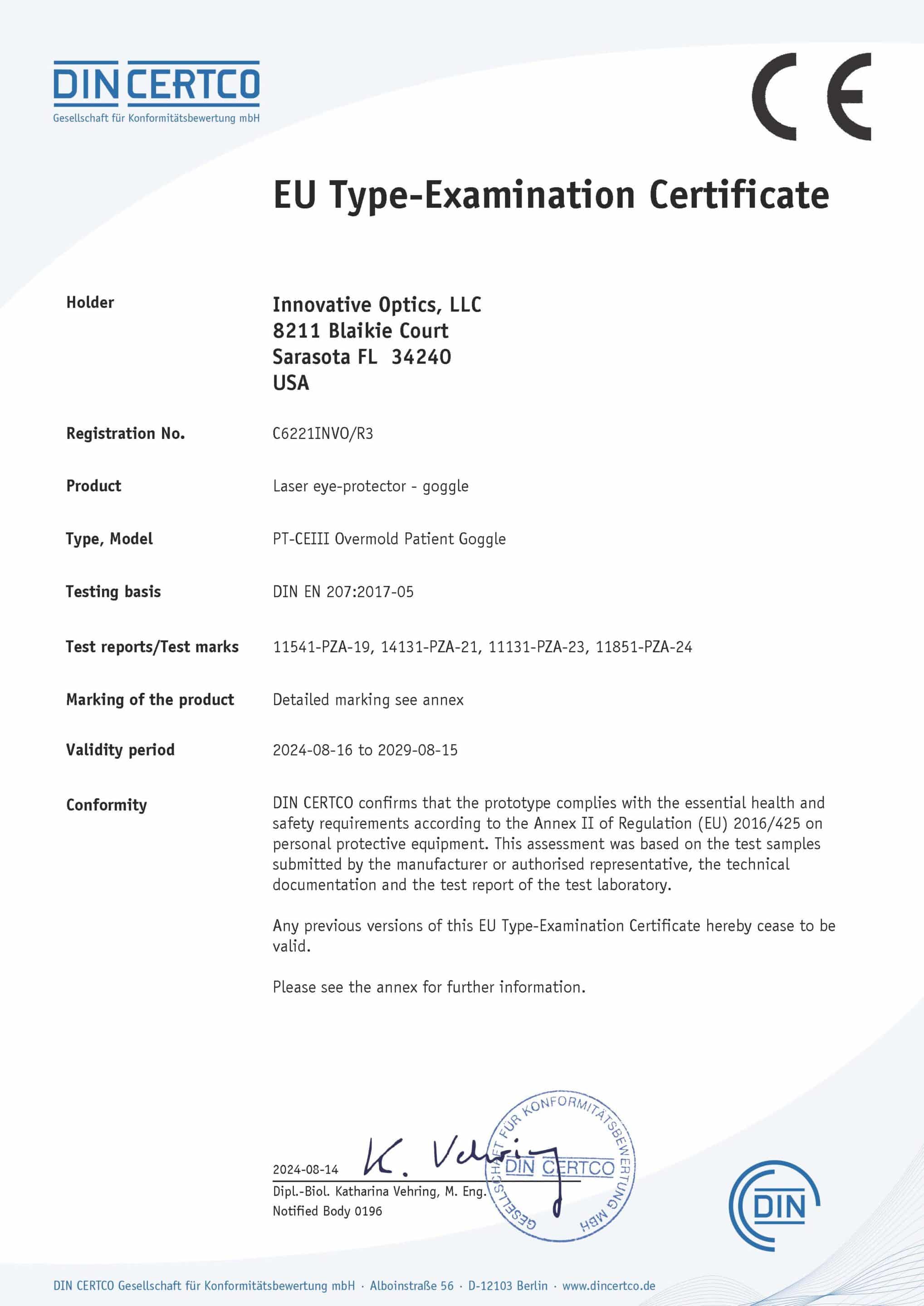 PTCEIII Blue Patient Goggle Technical Data Sheet