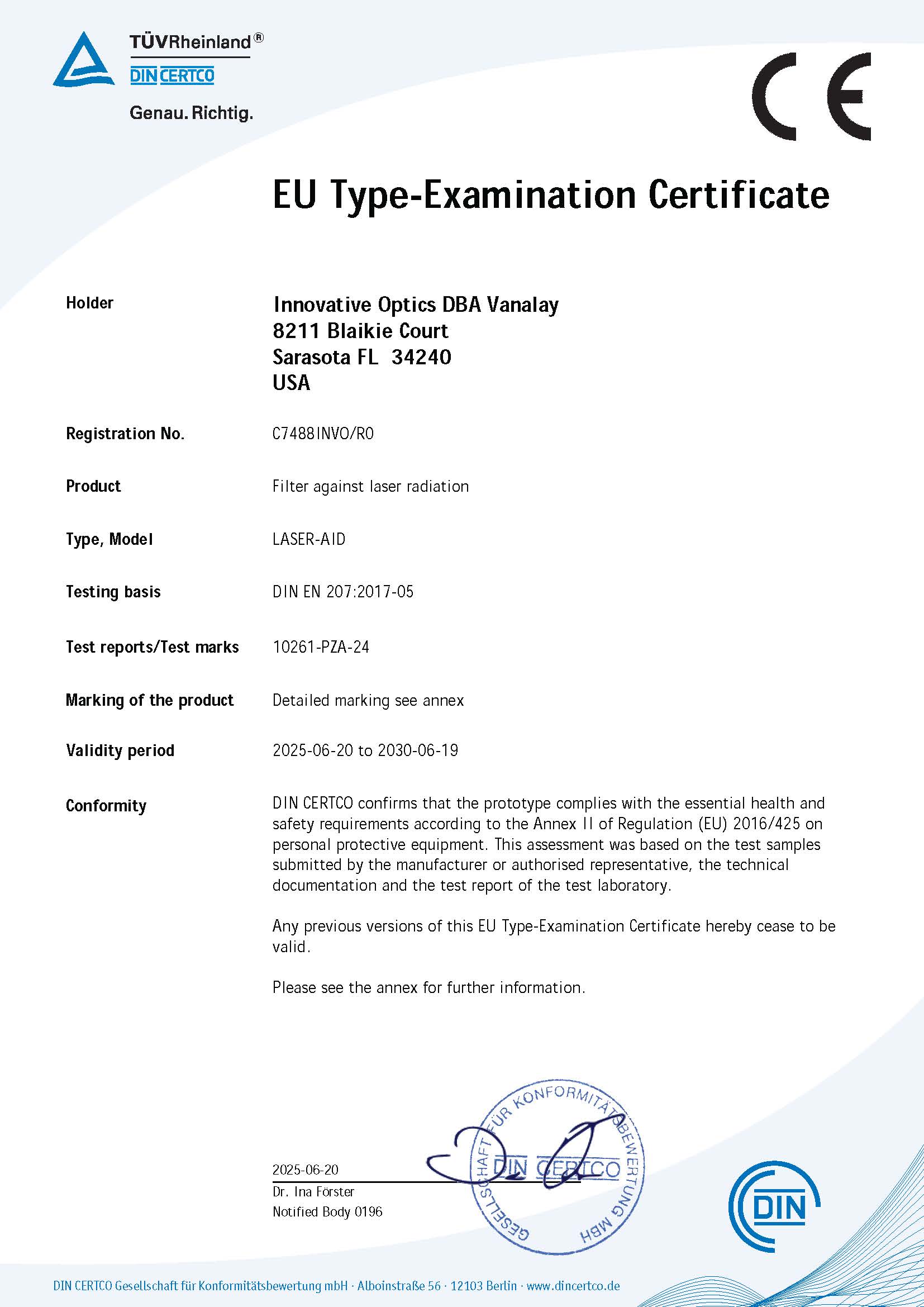 LASER-AID provides disposable patient protection from all medical lasers from 190-2000nm (OD7), 2000-10600nm (OD 5).